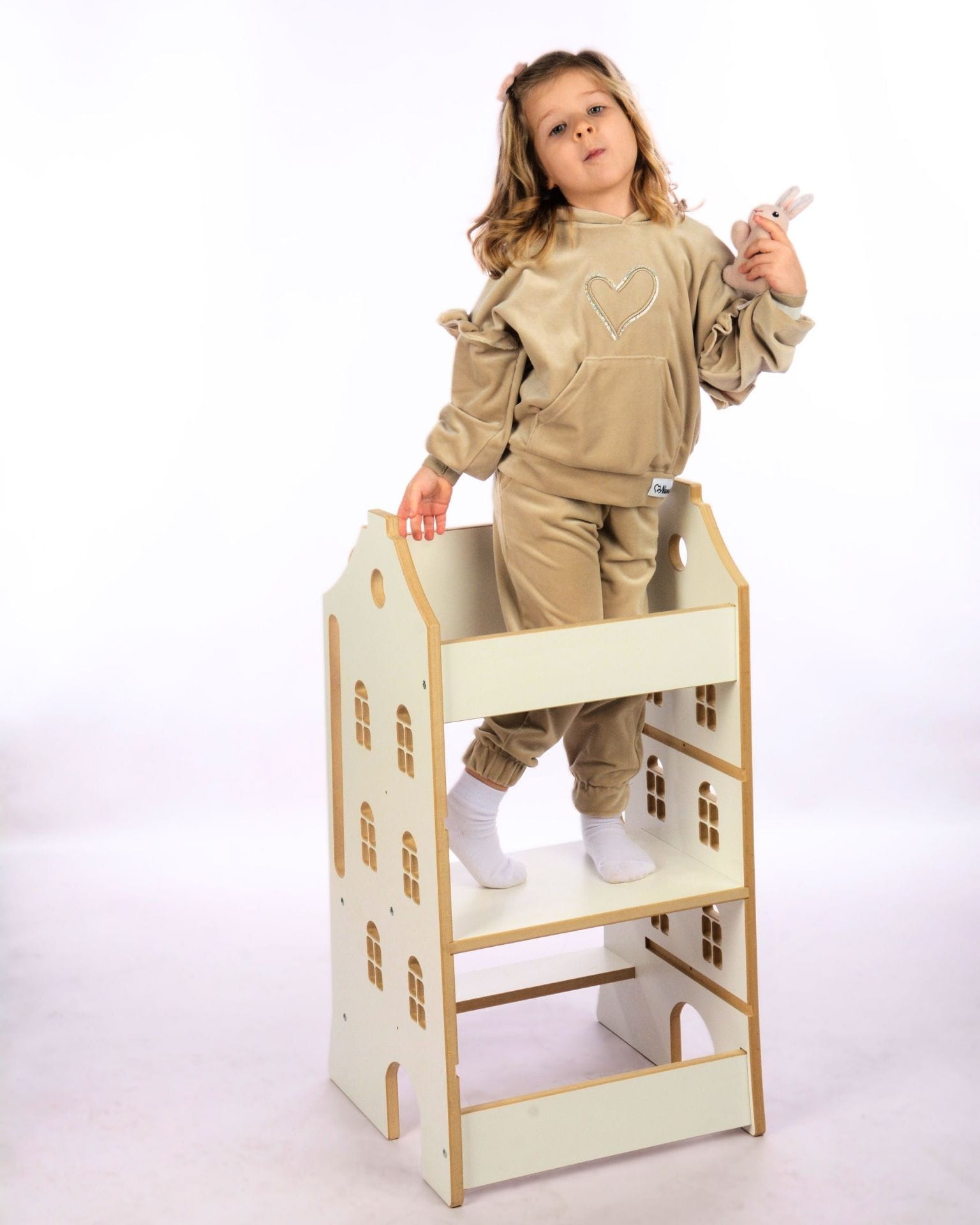 - Wygoda – praktyczny podnóżek ułatwia maluchowi samodzielne wejście na podest.