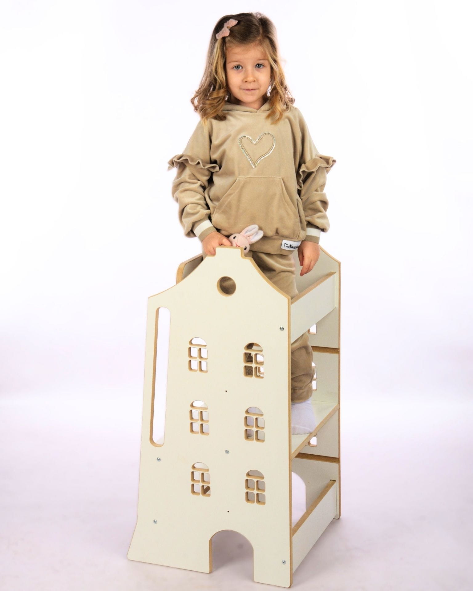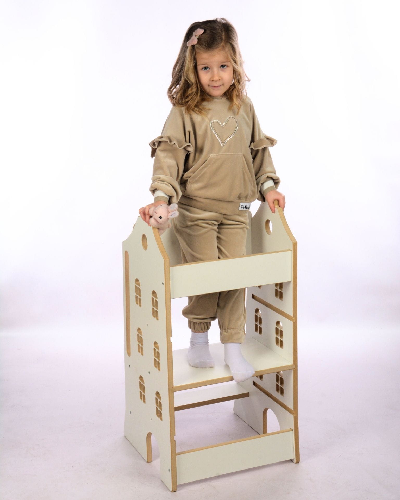 Kitchen Helper BabyCraft wykonany jest z płyty MDF o grubości 16 mm, co gwarantuje wyjątkową stabilność i trwałość. Wszystkie elementy wycinane są precyzyjnie na maszynach CNC, a następnie ręcznie szlifowane, aby były idealnie gładkie i bezpieczne dla małych użytkowników. Każdy egzemplarz powstaje w naszej polskiej pracowni, z dbałością o każdy szczegół.