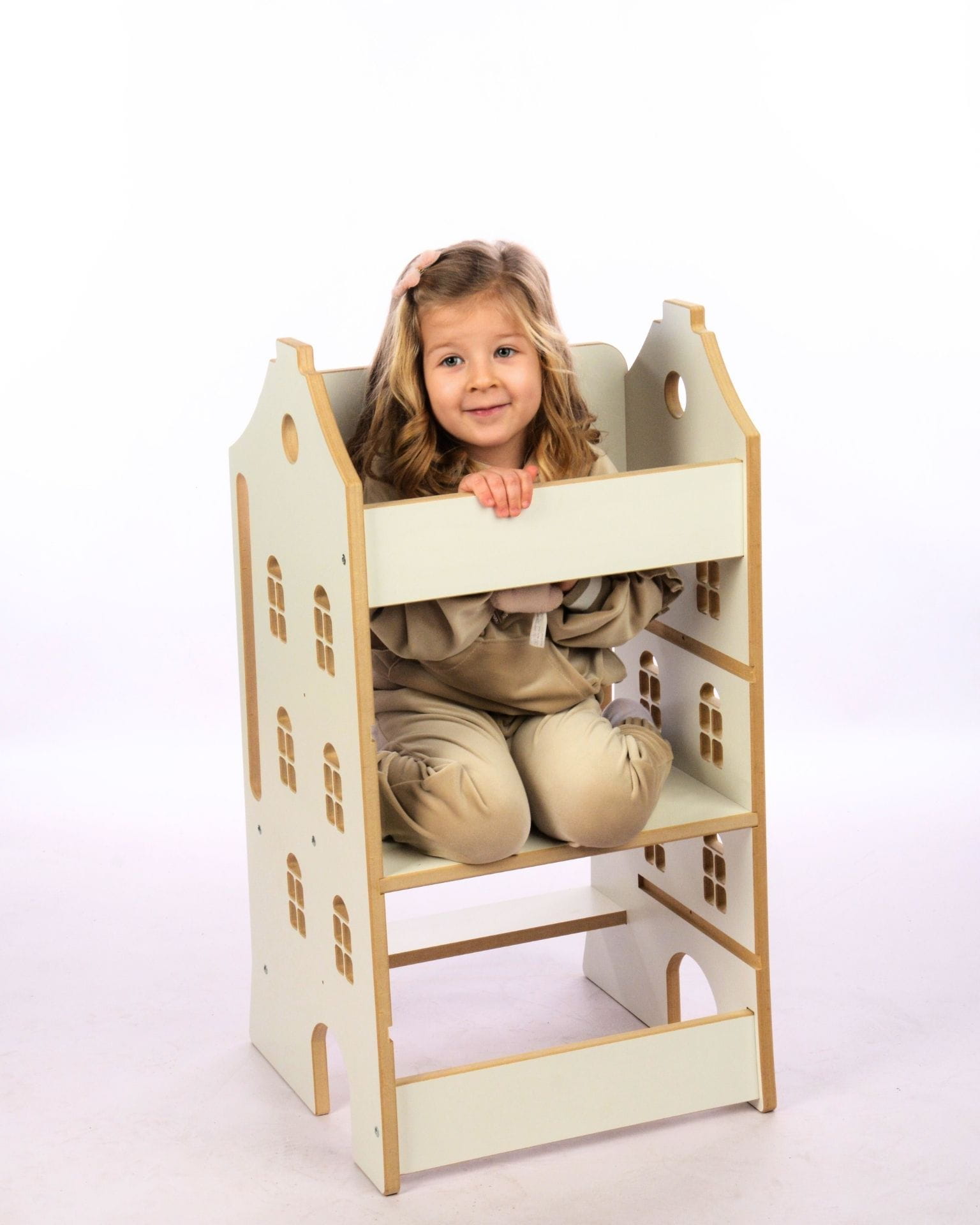 - Regulowana wysokość – 3-stopniowy podest rośnie razem z dzieckiem i zapewnia wygodne użytkowanie przez lata.
